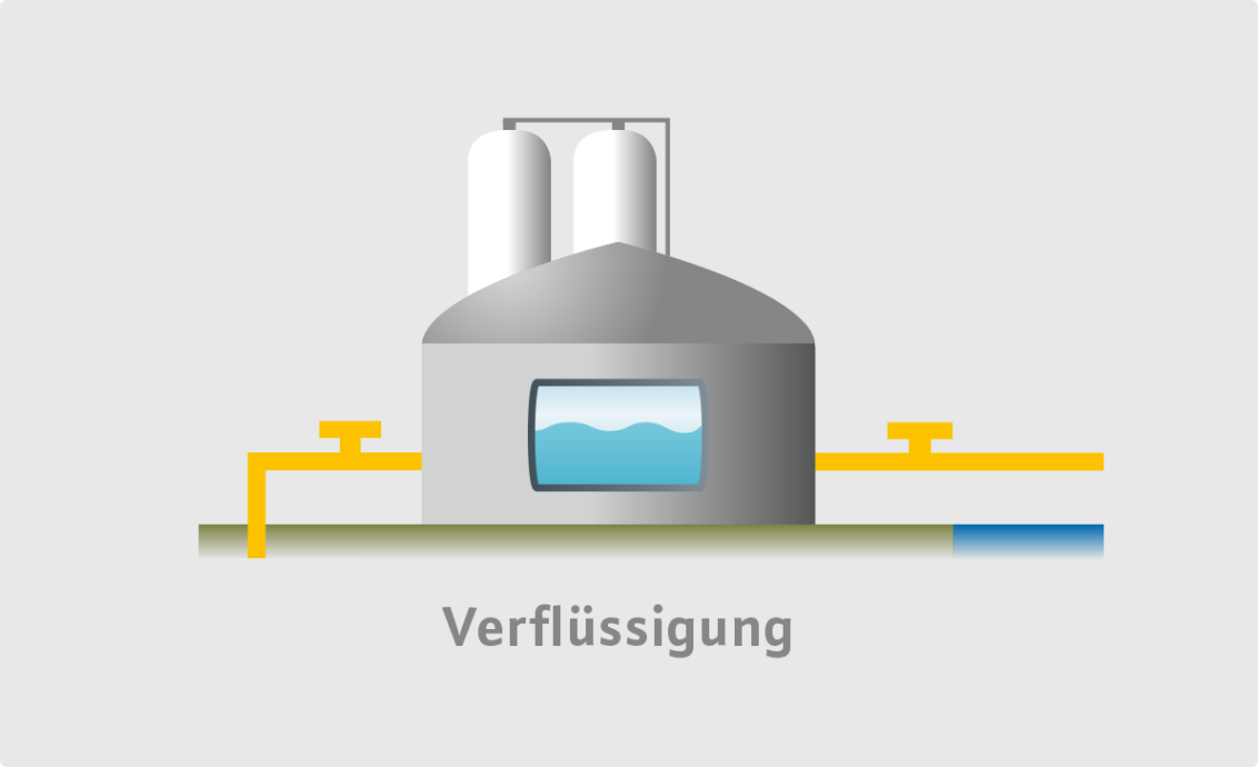 In der Verflüssigungsanlage wird das Erdgas von Schwefel, Stickstoff und Kohlendioxid gereinigt und auf etwa minus 161 Grad Celsius heruntergekühlt. Dadurch verringert sich das Volumen auf ein Sechshundertstel.