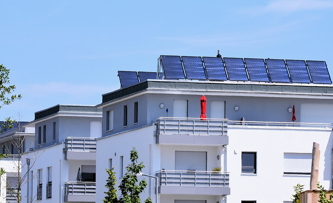 Die Stadtwerke Augsburg nutzten die Sanierung einer 1974 erbauten Wohnanlage, um ein richtungsweisendes Konzept zur dezentralen Erzeugung und Speicherung von elektrischer, thermischer und chemischer Energie in einem Reallabor zu testen.