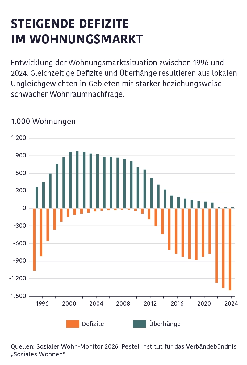 Es war ein Rekordstand, den der aktuelle „Soziale Wohn-Monitor“ Anfang Januar 2026 vermeldete: 1,4 Millionen Wohnungen fehlen in Deutschland; so die jüngst veröffentlichte Studie des Pestel-Instituts (PDF) im Auftrag des Bündnisses Soziales Wohnen. Das Bündnis fordert daher einen Bund-Länder-Pakt für den Wohnungsbau, insbesondere für mehr Sozialwohnungen. Das Problem: Die Flächen für Neubauten sind entweder knapp, teuer oder umkämpft – und zugleich verschärfen sich die Herausforderungen um das Erreichen der Klimaziele.